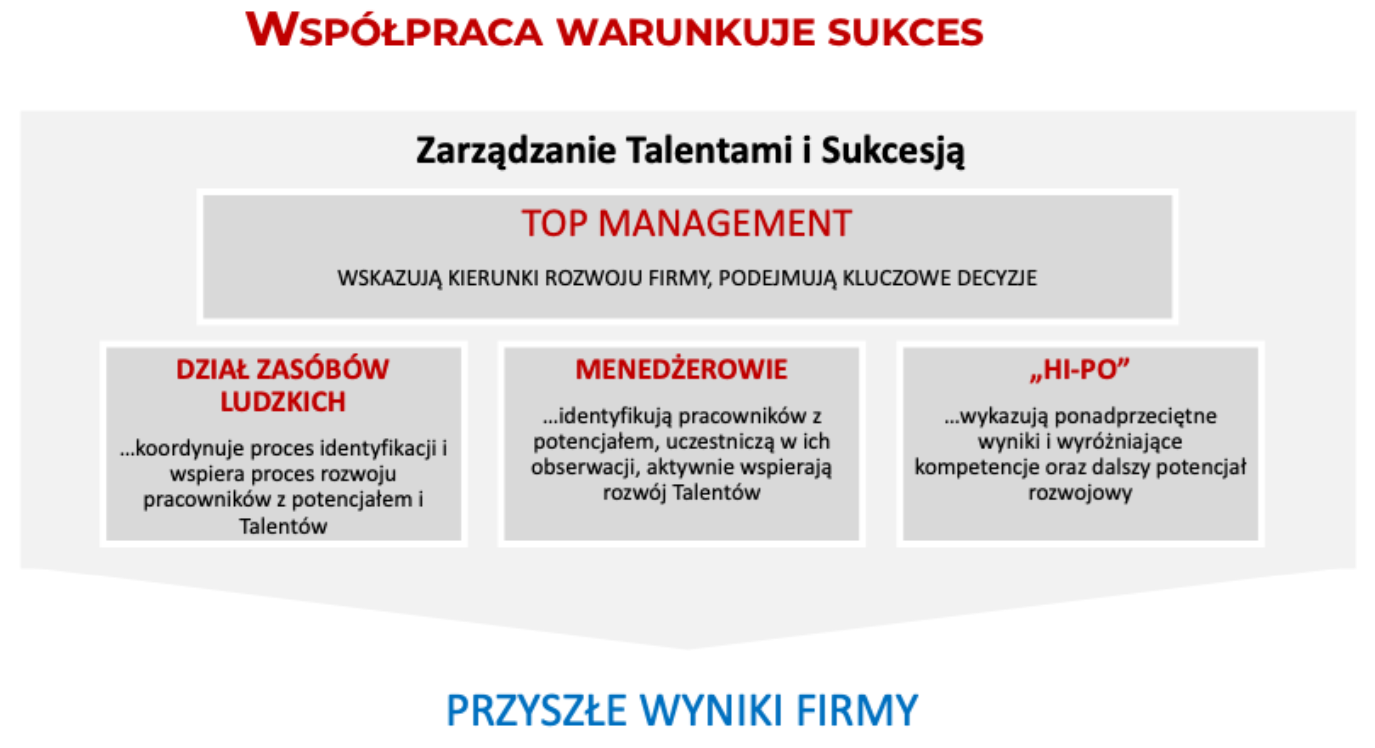 • Zarząd – wyznacza strategiczne kierunki, zatwierdza pulę talentów i sponsoruje projekty.
